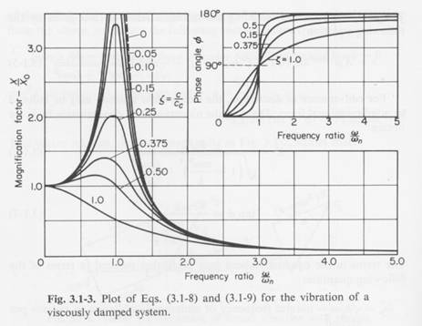First message: the greater the dampening, the lower the magnification factor.   When the excitation frequency is right on the natural frequency, we call it resonance.  If the dampening is low and resonance occurs for a very long period (which can be millions of cycles for a crankshaft or less than a second for wing flutter) the structure can fail.