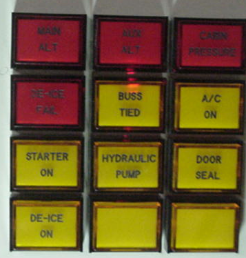 annunciator block (upper left) at/above 10,000' cabin altitude.