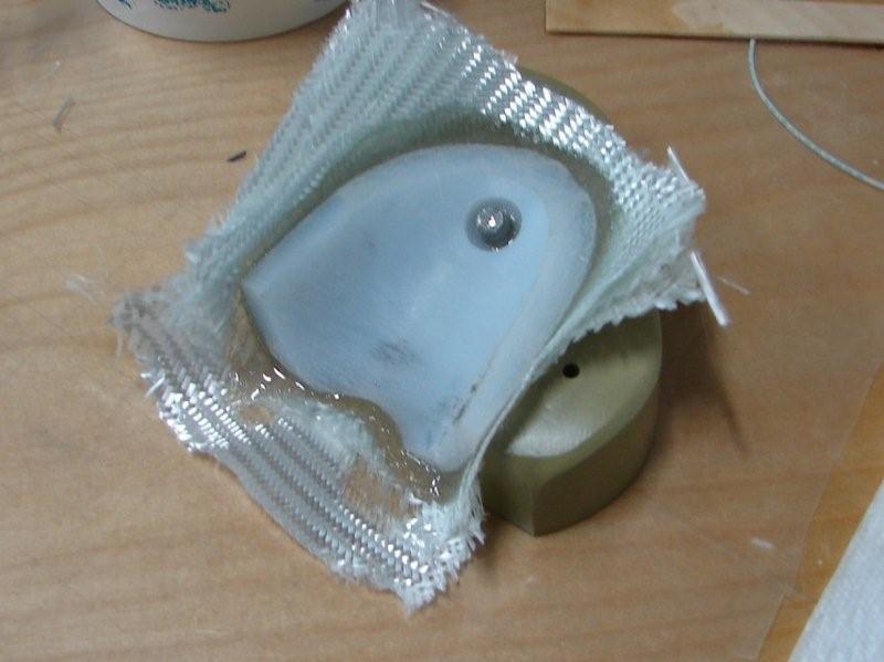I pulled the main gear box, tweaked it and reassembled. Then I did the check shown on 19-25 and adjusted the gear positions by sanding the pads, using carbon paper to find the high spots. The legs were initially hitting only on the aft part of the poly bumpers and had to come down a good bit. When I got them set according to the directions one side had good contact but the other was farther forward so it still made only partial contact. Hopefully the darker contact areas will show in the photo. The BID is to build up a pad and gain height so I can sand the pad down for full contact. Plus I can log the cut-off bolt as fabrication...