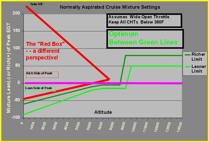 altitudes (rich of peak). For best economy you stay at 50F lean of peak at