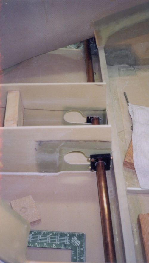 No need to worry about how good or bad the flanges happen to align. Welding by its very nature will cause these slight variations. The important thing is to make sure the bearing blocks are all in alignment. I used a copper pipe as a guide to get the bearings straight. After that almost anything with good compressive strength can be used as a filler to take up the unevenness between the flanges. I used aluminum spacers. If the holes happen to not align, simply drill them out.