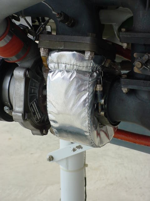 I have read several postings on insulating inside the engine cowling for protection from the hot turbos. Based on marine and commercial experience, we decided to install a "turbo blanket" for heat protection. Photos of installation are attached for your perusal.