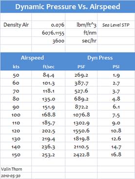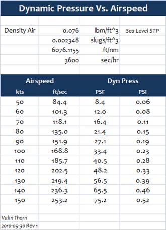 the table corrected. The dynamic pressure expressed in psi is lower