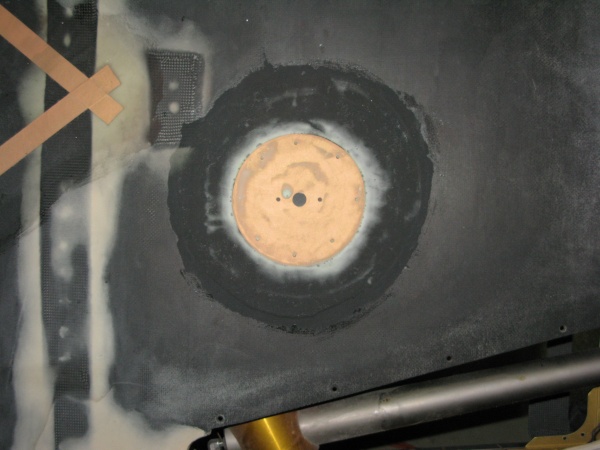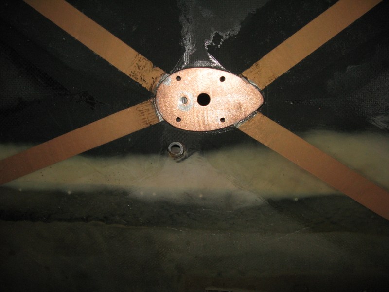 I then covered the plate with 1 bid of glass, exposing the copper in the center where the antenna base contacts it.