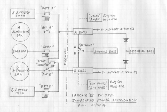 When I was young and stupid (not long ago) I had thoughts of long overwater (think trans-Pacific) flights.  I also have experience with failure modes assessment analysis (FMEA) which frequently shows up failure modes easily over looked.  After reviewing various electrical and instrument configurations I arrived at a system design which is shown in simplified form in the attached sketch.  It consists of two alternators, two batteries, four busses, and a lot of opportunities for cross tie.  I use dual Chelton screens, with PFD off the essential buss (many sources of power), the MFD off of the avionics bus (which has many sources of power), and back up electric attitude  indicator (on essential buss), turn and bank (essential buss) and air speed and altitude indicators.
