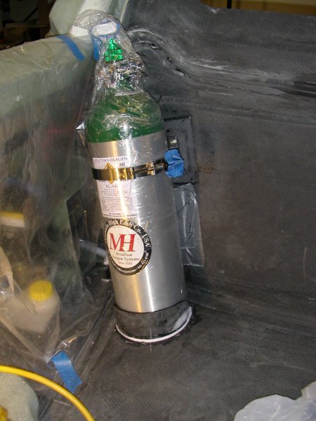 I put my oxygen bottle behind the copilot seat back, against the fuselage