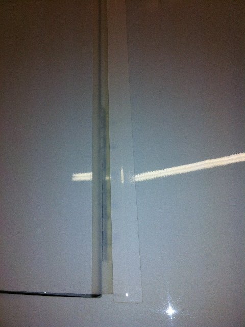 with glue under the red peel off, top side of Mylar tape and leading edge safety