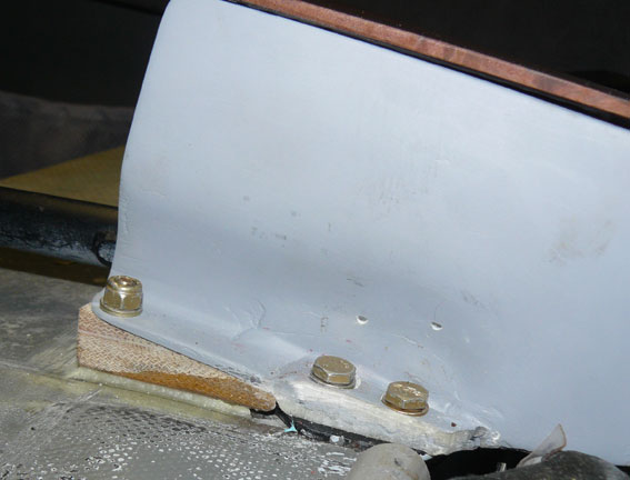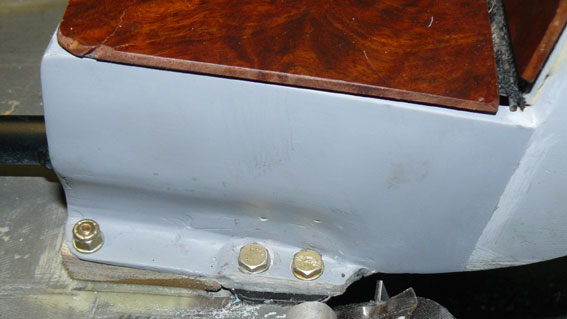 It attaches with the four bolts that hold the hand pump, plus two forward bolts bonded into phenolic "wedges" which were then bonded to the top of the spar box with flox to get a precision fit. The four bolts are not far enough apart to provide attachment rigidity. (Been there, done that.) The forward bolts make it solid.