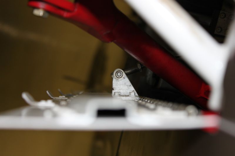 BTW, Selecting Gear Up while on the wheels is an incredibly bad idea. Buy a decent pair of jacks NOW. Also, do NOT strap the spinner to lift the nose. Remove the top cowl and strap the propshaft.