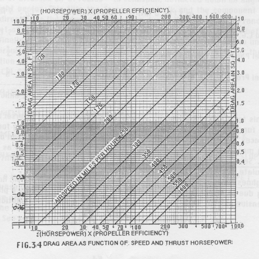 Here is how it works using the attached chart. Multiply your full throttle sea level power by .85 for the propeller efficiency to get the net horsepower (along the top of the chart attached), then go down the diagonal line until you intersect your top speed in MPH (along the bottom). At that intersection go to the left or right to get the total equivalent "flat plate drag area." Lower is better.