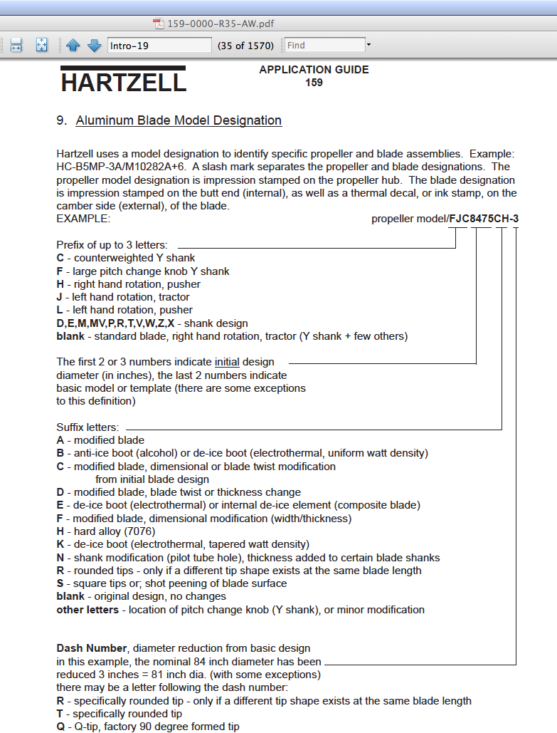 B. Dennis Johnson found a Hartzell page, and Bob Rickard found a Lancair page, that both characterize their propellers as different diameters than Hartzell's blade model number indicates. According to Hartzell's application guide: -- An F7693DF blade (Rickard) is 76 inches (F76; and no dash number). -- An F7391D-3 (stock Legacy) is 70 inches (F73; minus 3 inches for the -3) Not sure how much difference that makes; but it's good to start with consistent data.