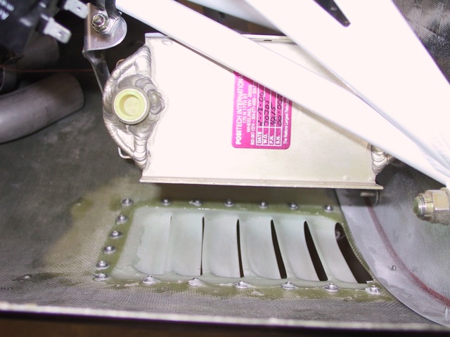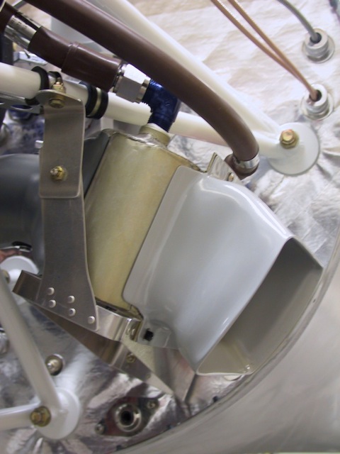 Here you can see my oil cooler install at various stages, basically in at lower right, through cooler mounted on the firewall and out lower left.