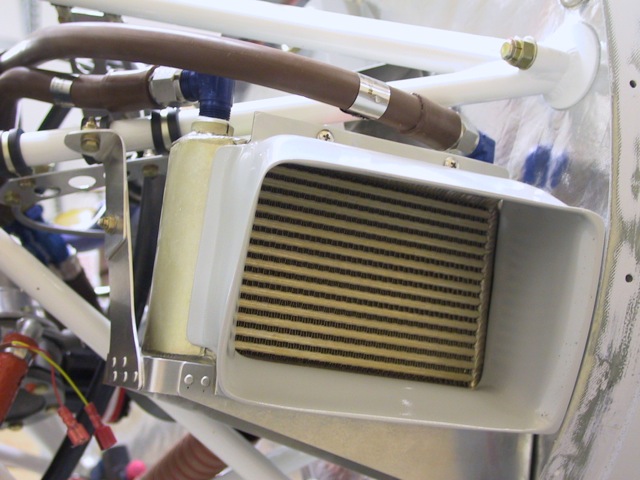 basically in at lower right, through cooler mounted on the firewall and out lower left.