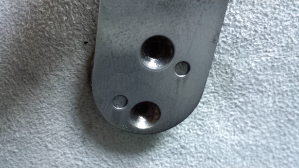 Steven, here are the photos I promised. The pins could be a bit longer to be flush with the handle. This takes the shear instead of the screws. I had broken a couple of the screws before coming up with a solution. Anything to transfer the shear load from the screws would work. I also use blue loctite on the two screws.