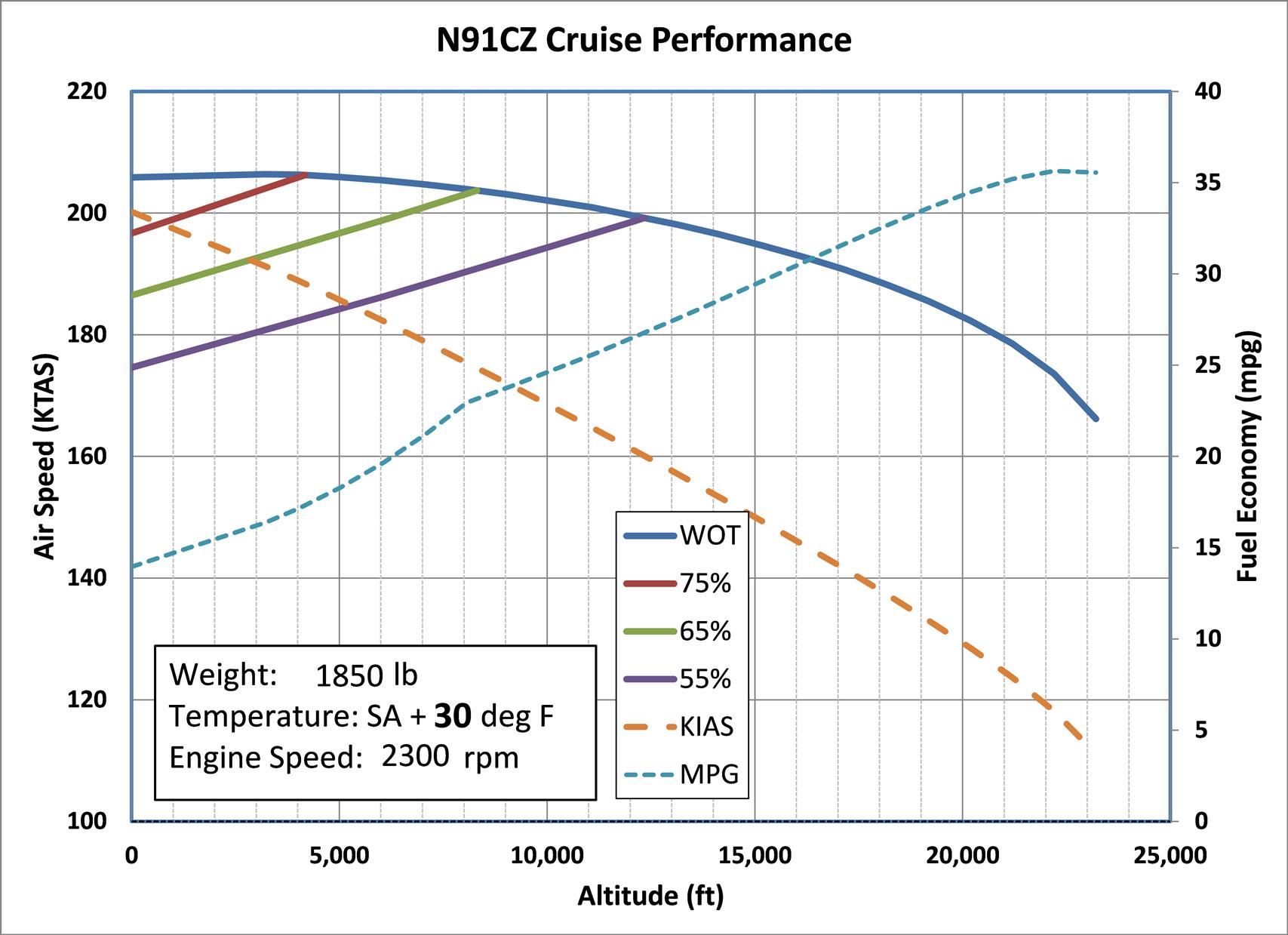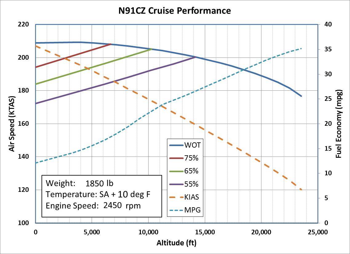 speed on performance charts for the stated conditions. Peak economy occurs very near the 120 KIAS