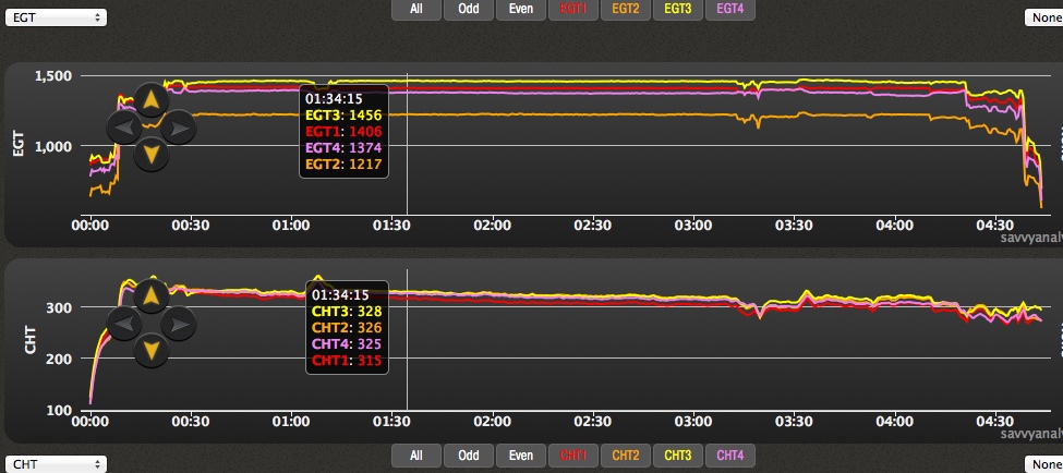 And here is the flight home on March 21st, after exhaust repair on #4 manifold. In order to install #4, #3 had to be removed. I had planned to do
