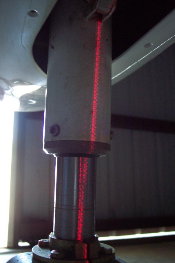 made a mark on a piece of blue tape stuck to the hangar floor on