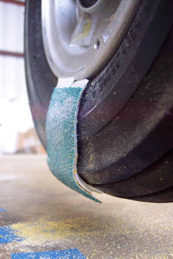 face). First I taped some 80 grit to the tire and rotated it against