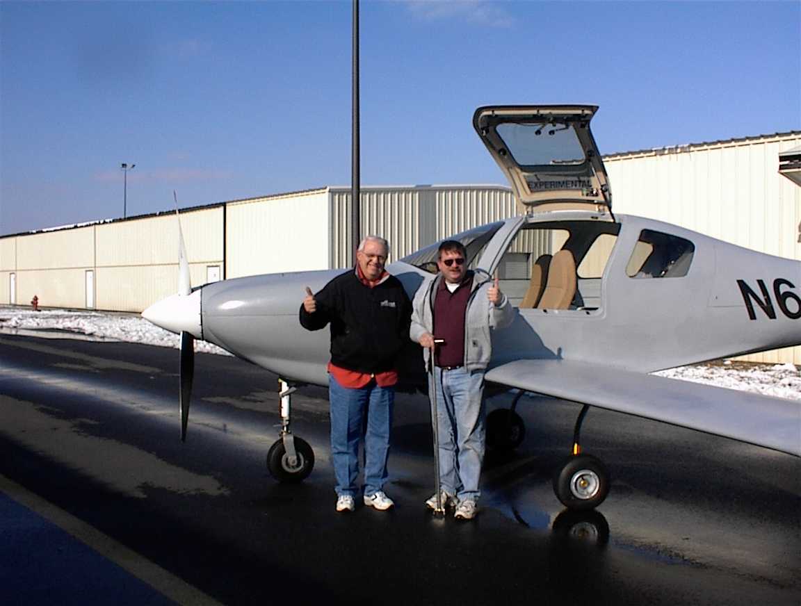 N619SJ flew for the first time today guided by the skillful hands of Charlie Kohler. 36 months from kit purchase to first flight. Airworthiness inspection went smoothly until we got a major snowstorm here in St. Louis yesterday. Snow and cold slowed us down some but grit and determination, hot coffee and a kerosene fed "salamander" kept us going. Charlie showed up Monday afternoon-- took a quick look at the airplane and paperwork and discussed with me the inspection format. Tuesday and Wednesday he inspected and we corrected. Couldn't fly yesterday due to snowstorm.