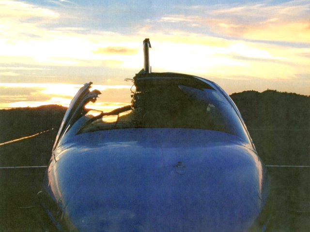 From Bill & Sue Harrelson's bird strike last year, on takeoff, at I would guess, 120 kts, we all know the damage that a bird strike can cause.