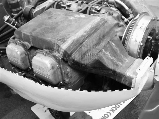 Exhaust is mixed with the cooling air immediately below the cylinders and then the two go out together. The cooling flow is sealed all the way.