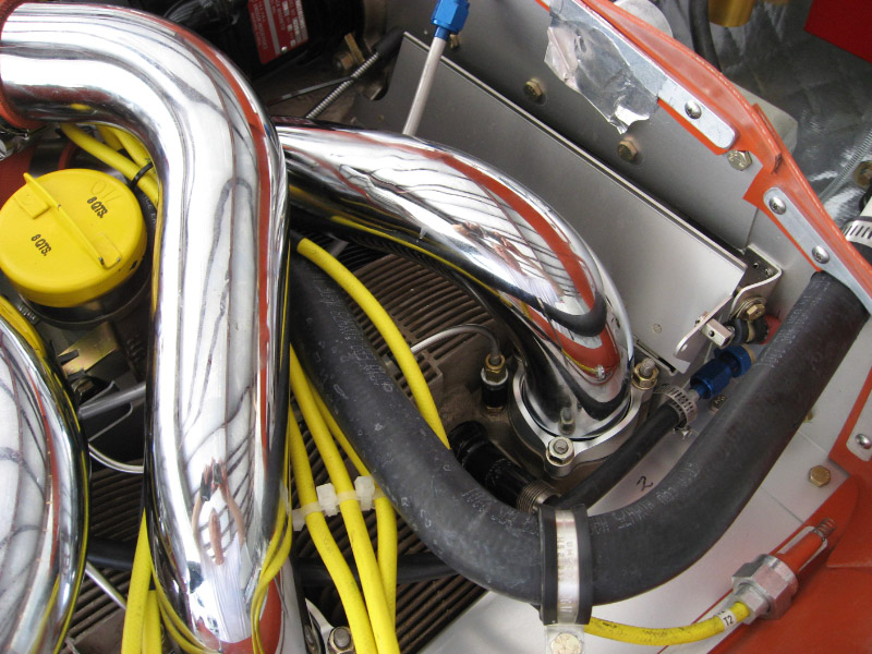 curved premolded heater hose has been replaced with a smaller ID, tighter