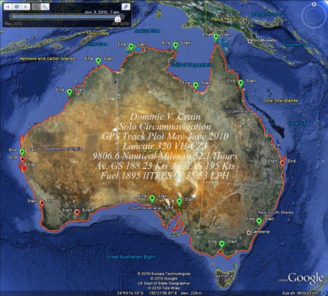 Anyway, lads and lasses, last year (May) I did a solo circumnavigation of continental Australia. ‘Cos the Wx at the south west corner was bad on the day I departed Perth, I had to cut inland by about a 100 NM before heading south to join the coast at an old whaling station port called Albany – like New York’s Albany in spelling. That plus a cupla other track shorts, and time limitation on the Maintenance Release to the Annual, I wasn’t all that happy with the outcome, so I did it again this year, and indeed satisfied the intent by being over water all the way. Pretty much like Matty Flinders except he was in a sailing ship and didn’t have three GPS’s. Well he did, but they were called sextants in those days.