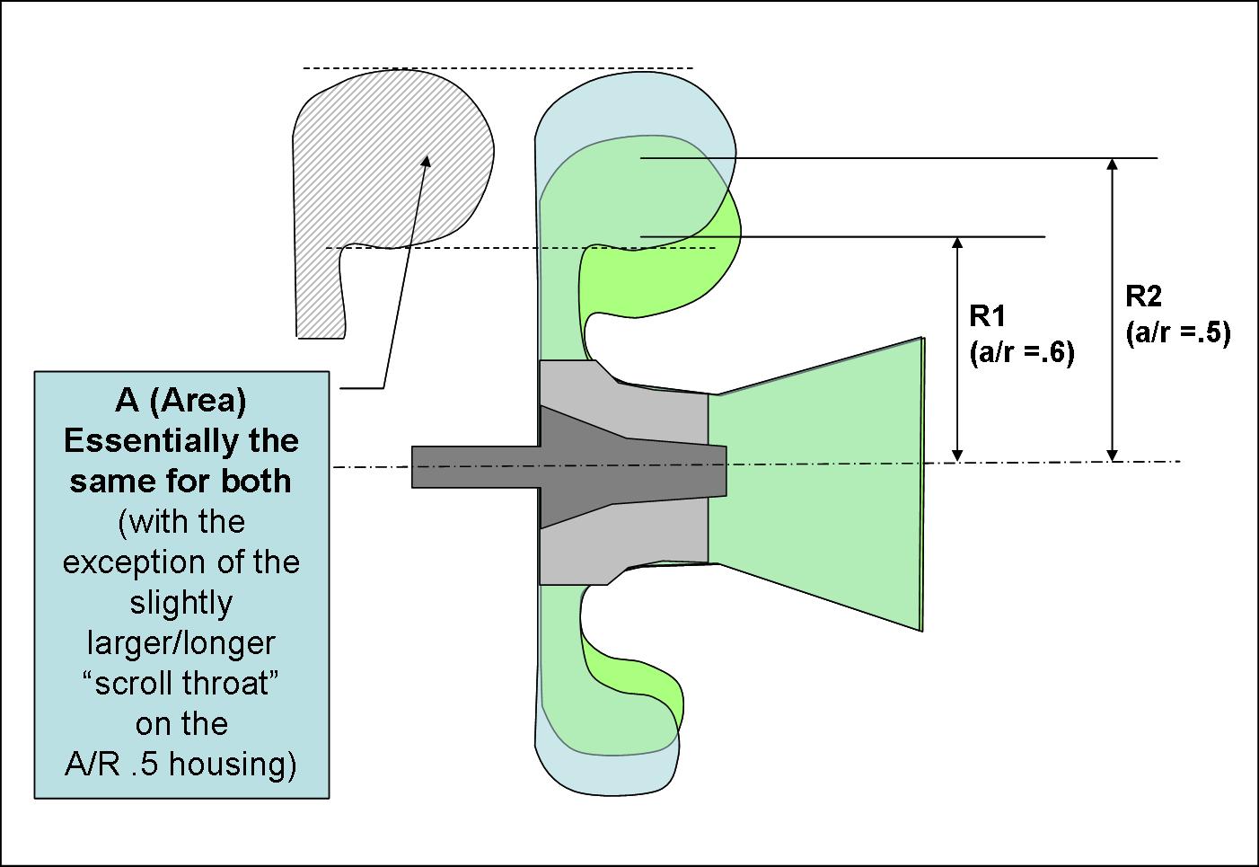 changed between a .5 and .6 A/R compressor on our birds is the Radius (Area is