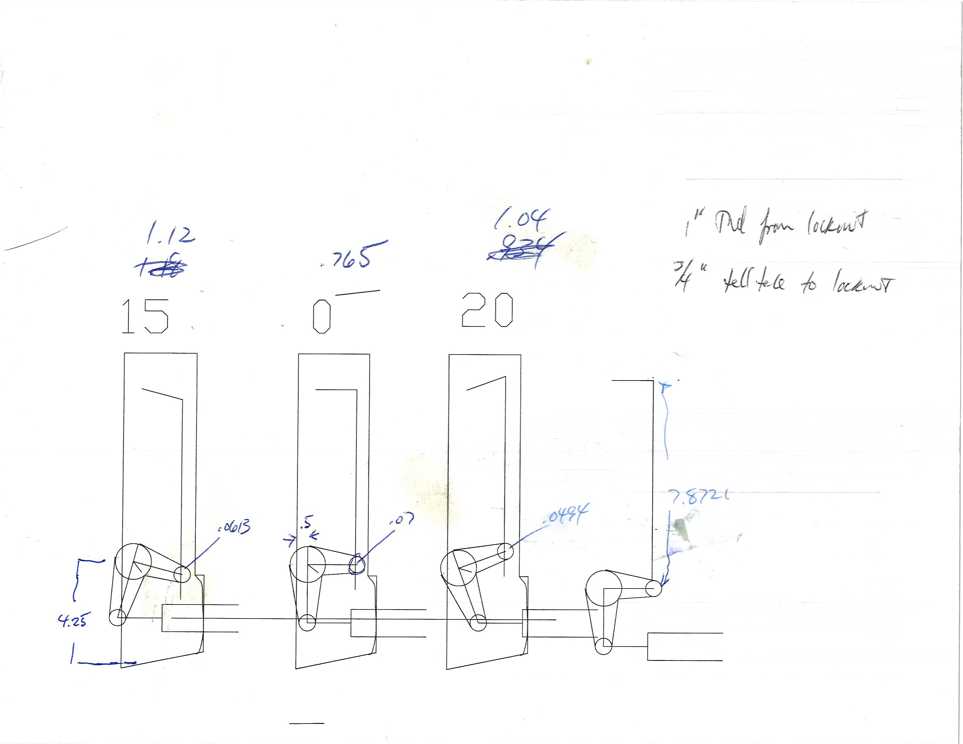 bellcrank arms swing through their arc so that affects the location of the shaft