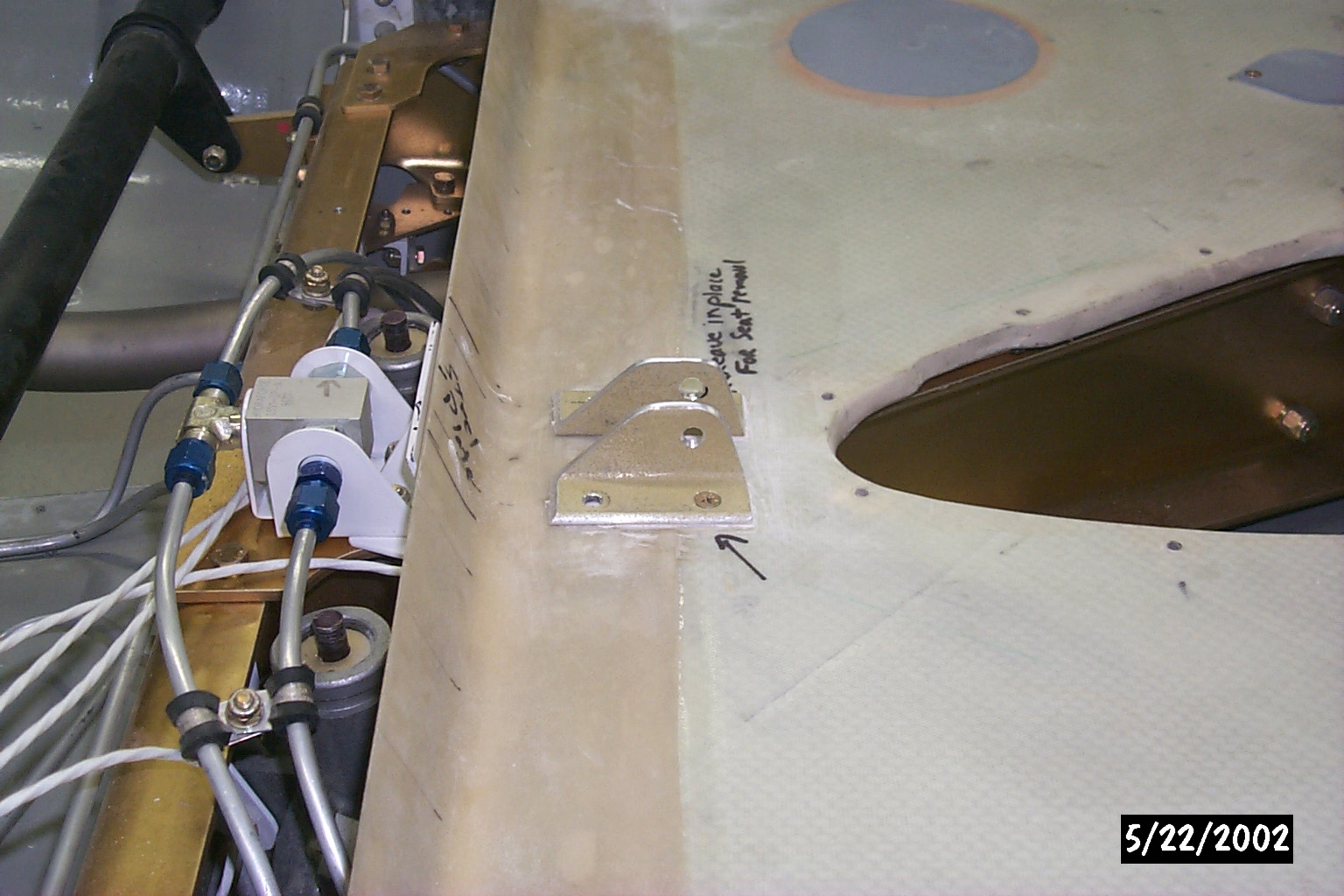 I'd recommend you make the pressure control box removable. Access through this hole, plus access panels for the two MLG trunion grease fittings, are all you would normally need for condition inspections. Pictures of my rear seat bottom attached. Note that I also made a 4" diameter hole in the left side of the rear seat bottom with an aluminum plate to cover it. This plate is held in place by a cross bar on the bottom side, and is removable from either inside the cabin or through the left main gear door. This access panel allows you to pass tools into the cockpit if needed. I also recommend you carry a small Phillips screwdriver and a 1/2" box/open end wrench in the cockpit at all times. This should allow you to open the cabin door when the latching mechanism fails...which it will do, sooner or later.