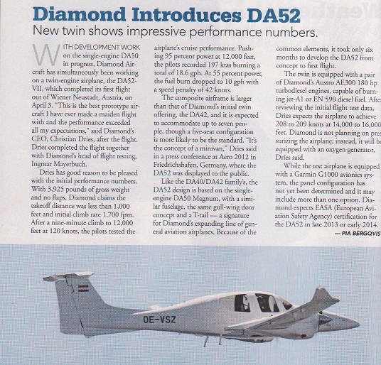 I was reading the latest edition of FLYING Magazine, and I noticed an article about Diamond's new 6 passenger turbodiesel twin. What really caught my interest was the statement "Diamond is not planning on pressurizing the airplane; instead, it will be equipped with an oxygen generator."