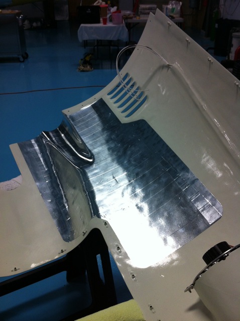 Definitely worth doing, Angier. The the thermal radiation heat flux off the red hot exhaust pipes delivers a lot of energy to the inside of the cowl which, even painted white, looks "black" to infra red and so absorbs nearly all of it. Using shiny reflective aluminum to reflect it back to the engine which can tolerate elevated temperatures is better than the soaking it up with composite cowl and is a good idea. I did the same using reflective Zetex fabric (aluminized fiberglass furnace curtain material) after seeing discoloration of exterior paint on some aircraft. I think it is a much worse problem on the turbo airplanes because of much greater exhaust surface area radiating heat to everything that is line-of-sight from the hot surfaces.