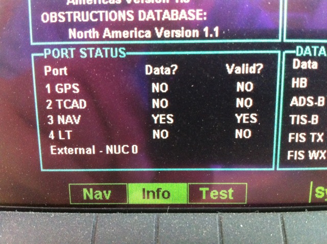 When installed in the cockpit, Port 3 NAV on the MX20 shows NO and NO and