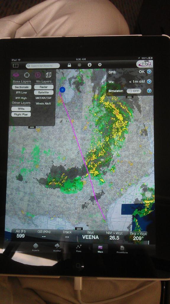 internet prior to takeoff. In general, I have noted that the FlyQ grossly > overestimates the precip areas compared to Foreflight on the ground,