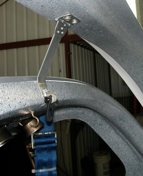 aft end of the canopy, engaged into a hole in the canopy roll over frame.